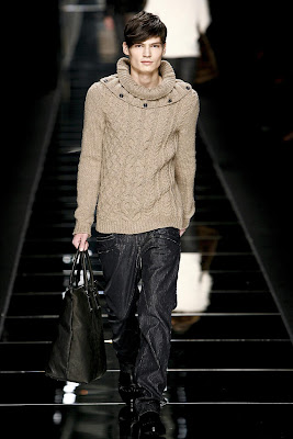 Vladimir Ivanov is wearing Iceberg - Knit blanket, with baret and lace up leather derby shoes to warm up your day.